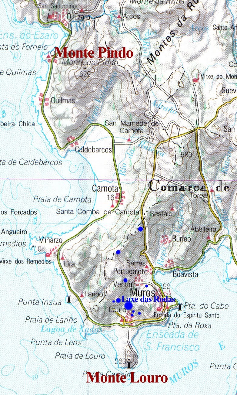 Cuando se hicieron los grabados no se podían obtener lineas de sombra mas al Norte ; pero con toda probabilidad el equinocio real de la época estaba aún mas mas al Sur. (El grabado debería ser mas antiguo de 4000 años , pues la orientación de 257º del Laberinto de Mogor tiene con toda probabilidad un caracter geográfico y se refiere simbólicamente a la orientación oblicua de las rías de Vigo y Pontevedra; o de los cursos bajos de los ríos Miño y Lerez. )